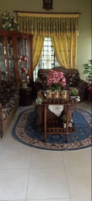 susun atur ruang tamu perabot jati